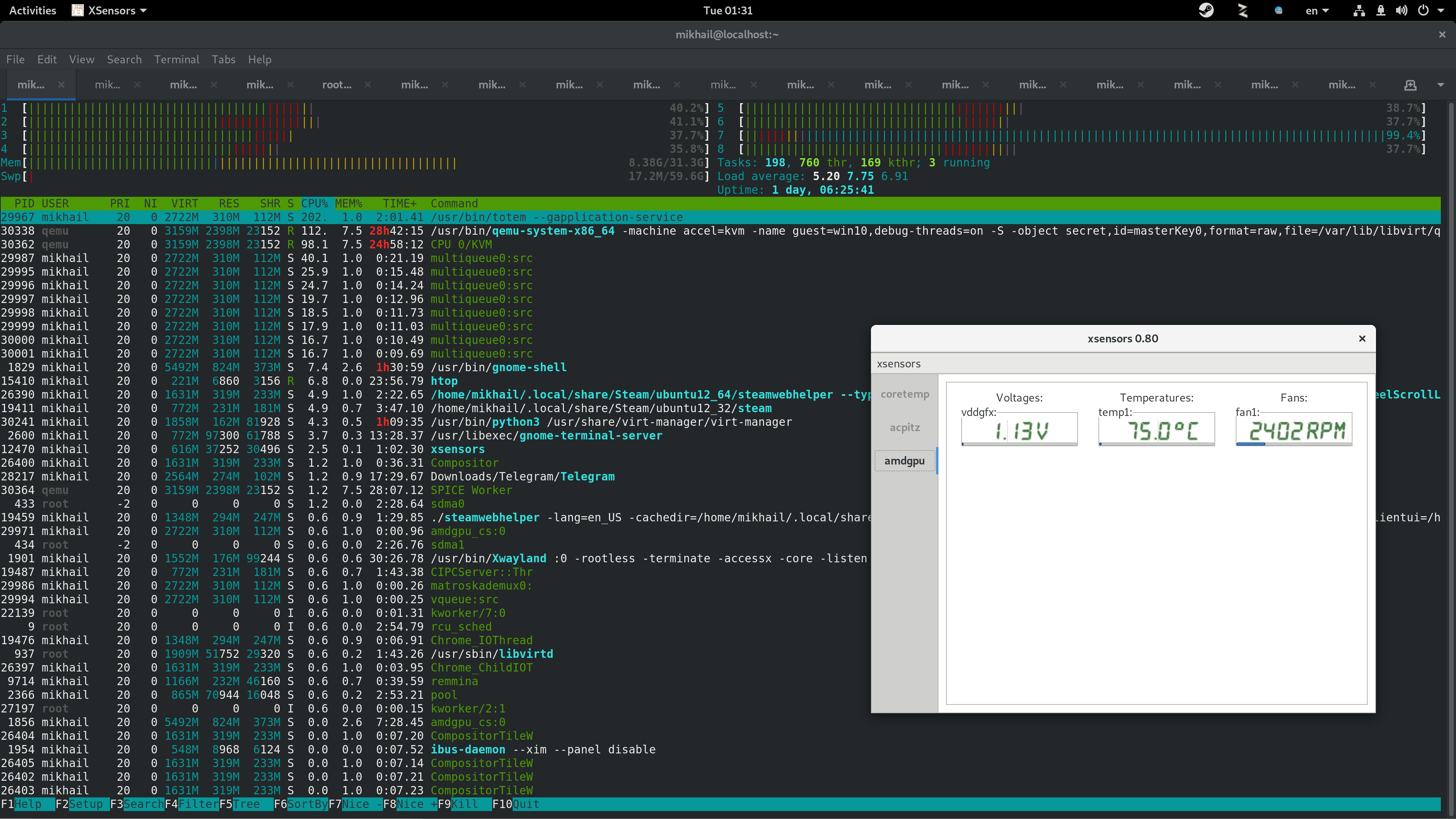 htop and xsensors